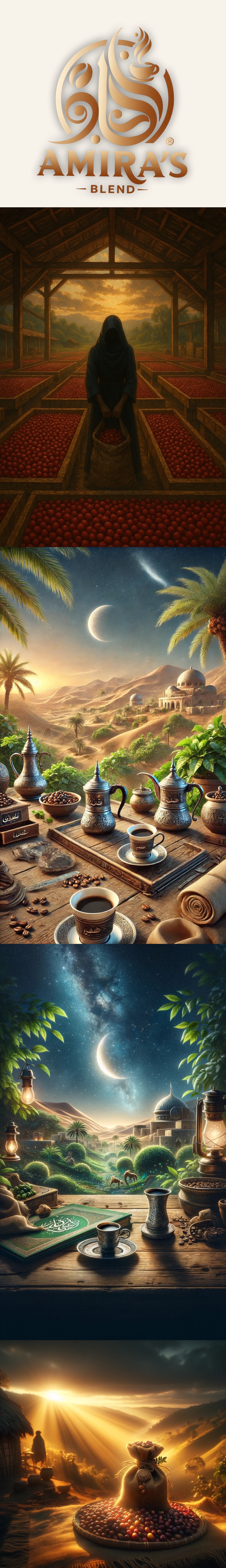 In the mythology of our brand, Amira was the last guardian of a sacred valley—Al-Qahwa—where coffee was not consumed, but revered. Raised to protect the secret of the perfect brew, she instead chose to leave, guided by a question: “How can we call it perfect if we’ve never tasted the rest of the world?”