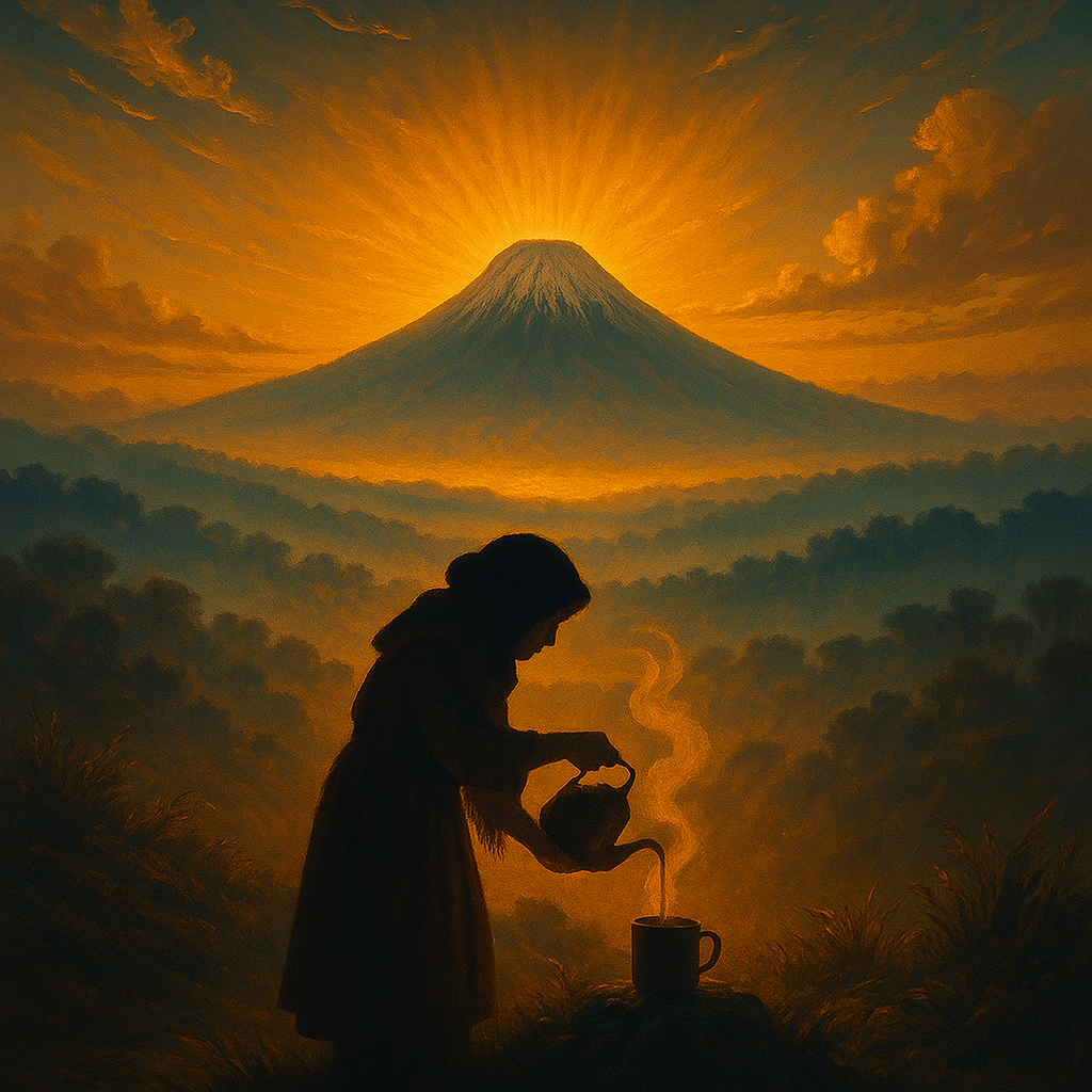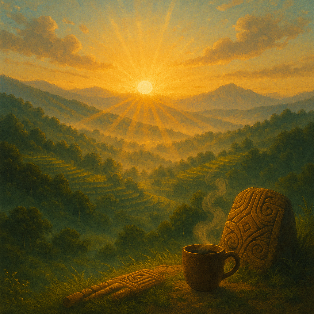 It was said that in this sacred realm, the dawn was a melody woven by the earth and sky—a symphony of light and sound that awakened all who heard it. The sun’s golden rays played upon the leaves, the wind hummed through the valleys, and the earth itself sang with creation. To drink from the coffee trees that grew in this enchanted land was to taste the morning’s song, to awaken to the melody of life.
